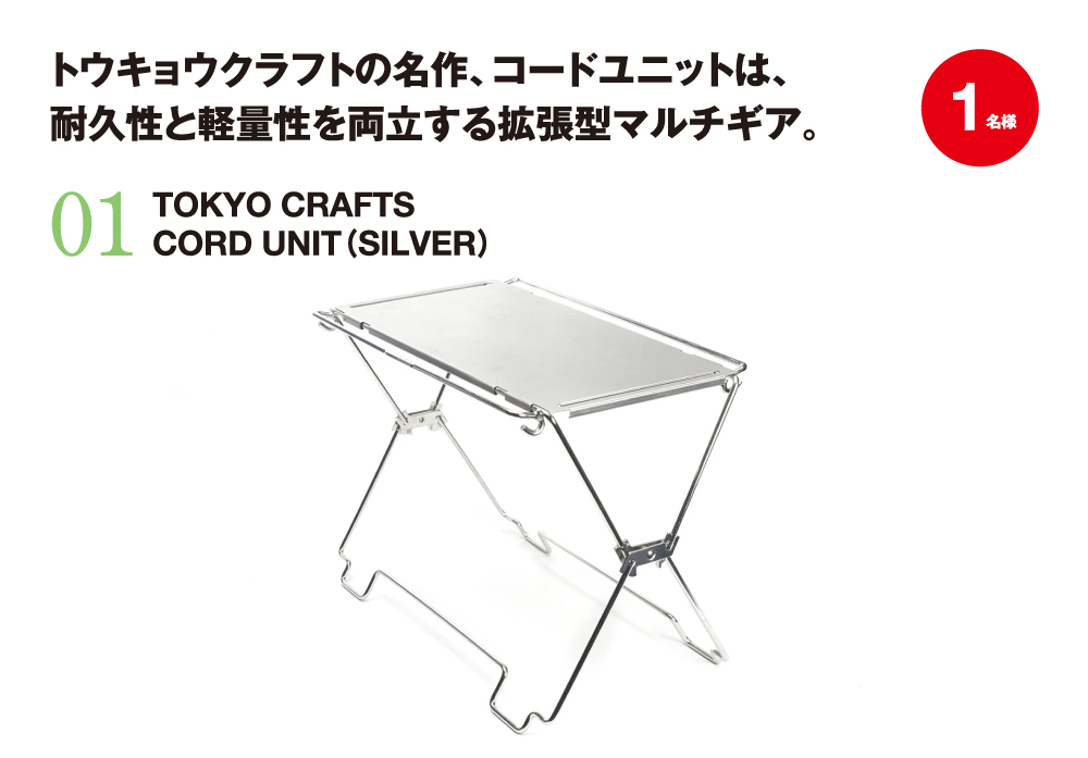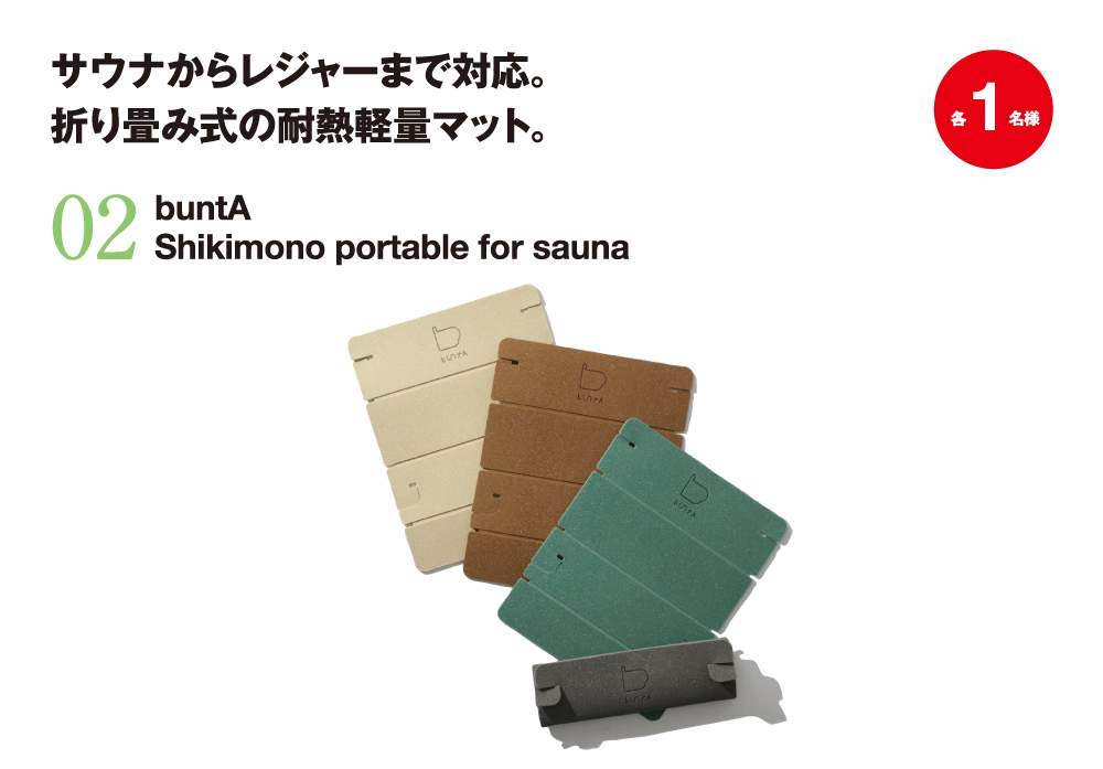今月は、昨年グッドデザイン賞を受賞した、「TOKYO CRAFTS(トウキョウクラフト)」の耐久性と軽量性を両立する拡張型マルチギア、コードユニット(シルバー)に加え、軽量で持ち運びやすいため、サウナやアウトドア、レジャーと幅広く活躍する「buntA(ブンタ)」の折り畳める耐熱軽量マットを抽選でプレゼント!!